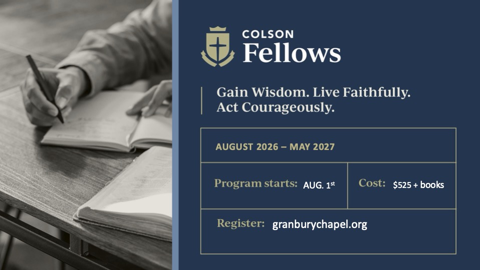 The Gospel isn’t a formula you apply to your life; it’s the Story you’re meant to inhabit. This fall we invite you to take a deep dive into Christian worldview and become the kind of believer who understands how creation, fall, redemption, and restoration all go together to form the only true Story of the world. And then live it here and now. To learn more about this program, contact communications@granburychapel.org. To register, click Sign Up.